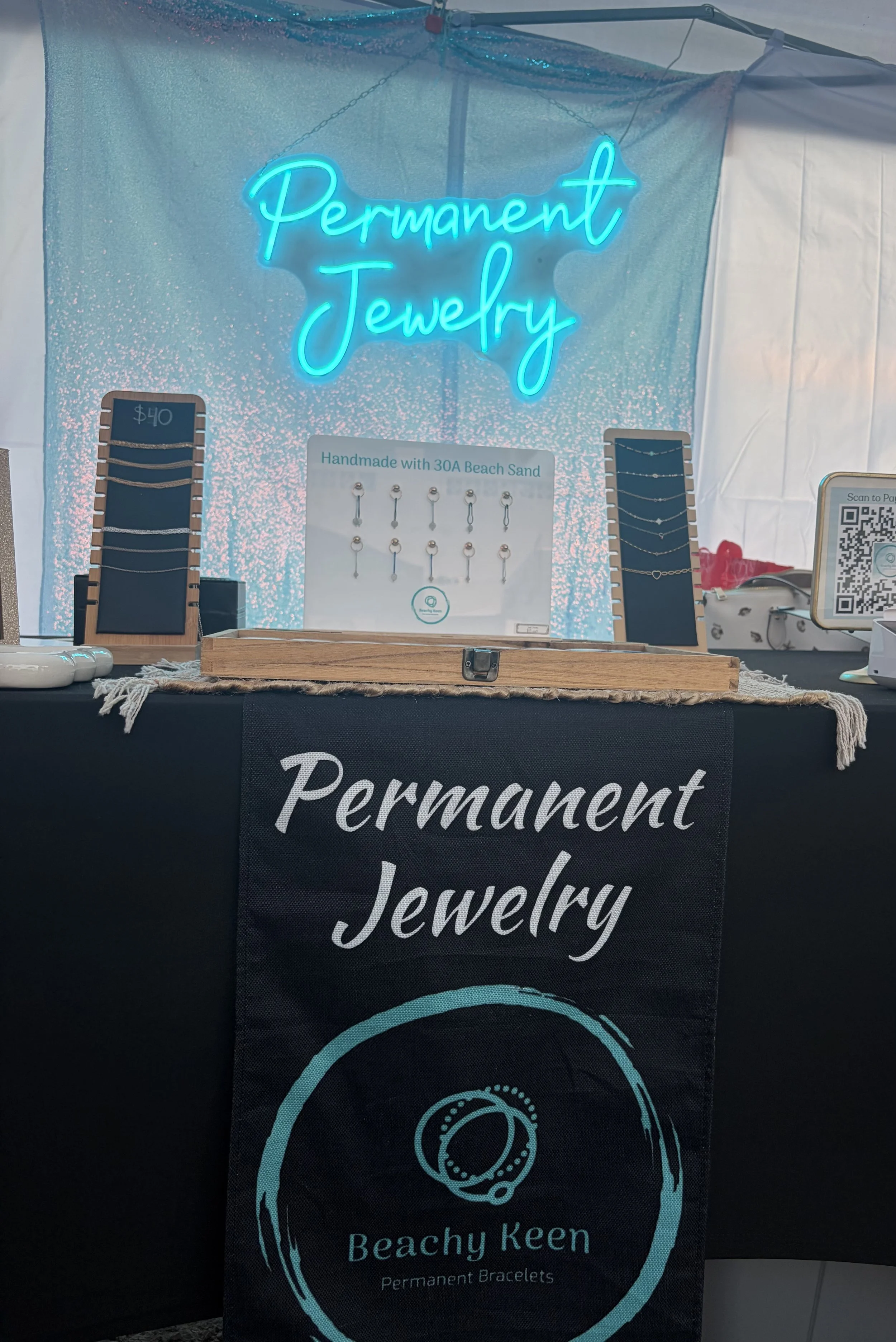 We partner with other local businesses along the Emerald Coast to bring the fun and our permanent jewelry experience to as many people as possible!