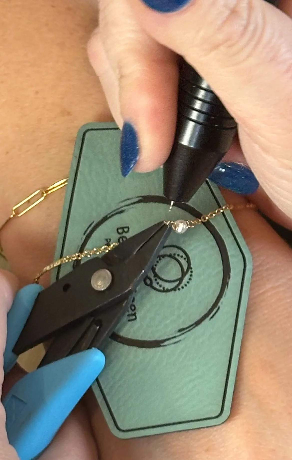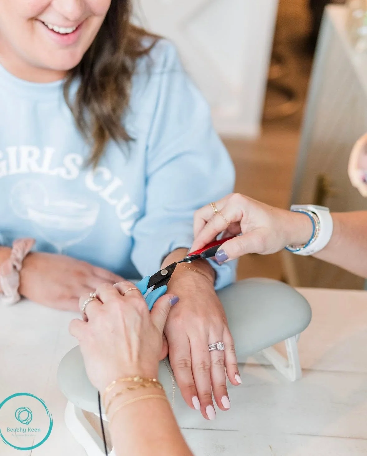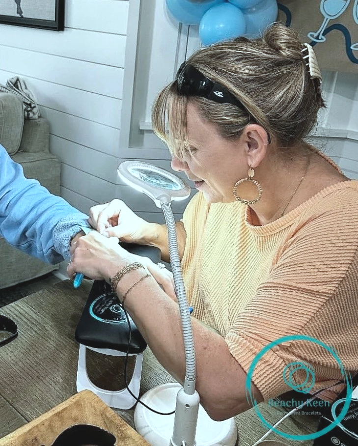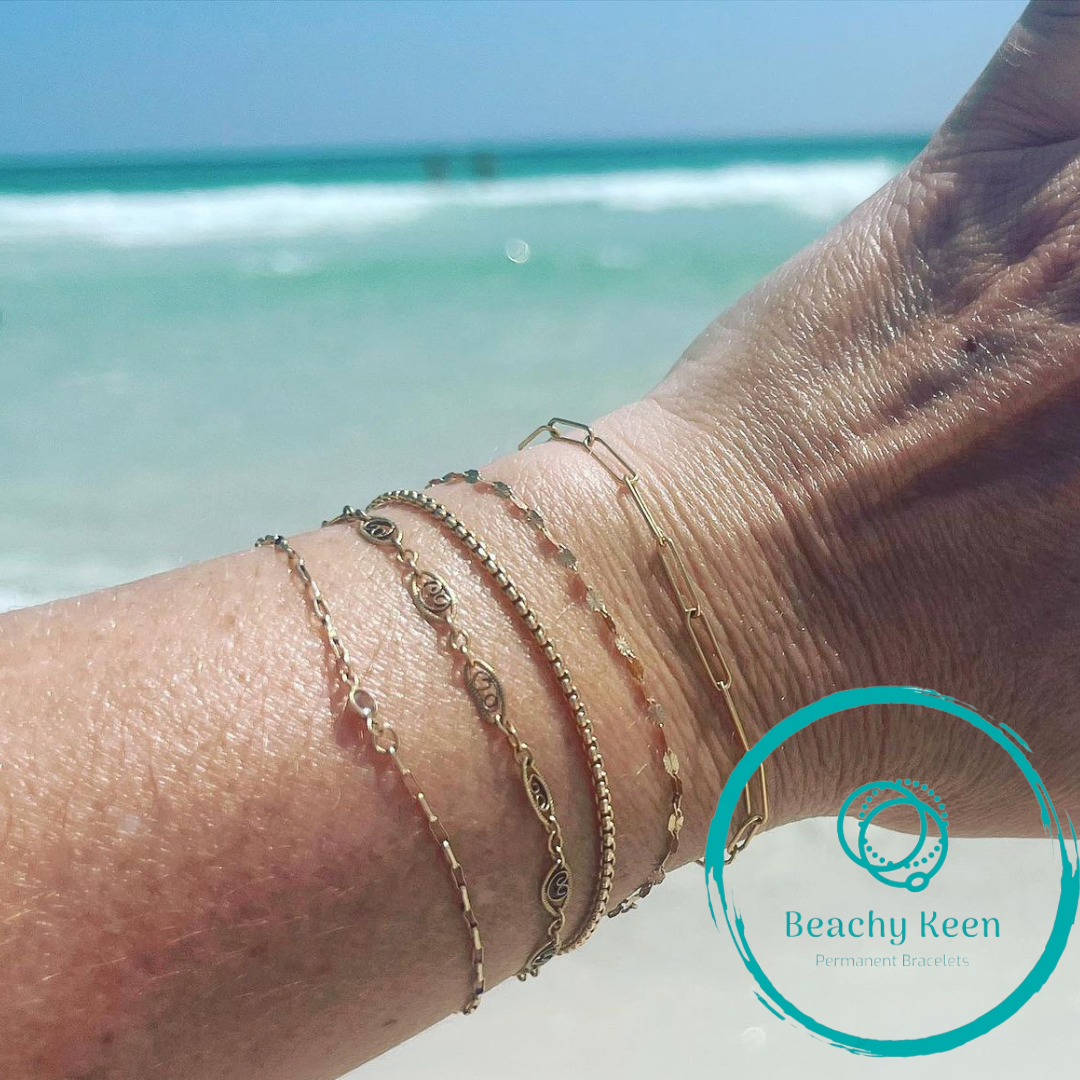Hi, I’m Kim, the heart behind Beachy Keen Permanent Jewelry. For over 3.5 years, I’ve been helping people celebrate life’s special moments with timeless, clasp-free jewelry that’s custom fit and welded just for you.